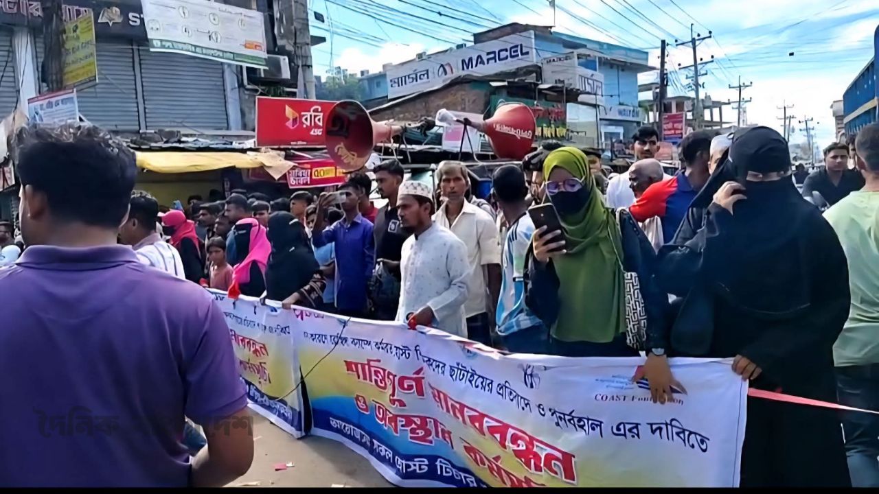 সরেজমিনে দেখা যায়- কক্সবাজার-টেকনাফ সড়ক, সকাল ৭ টায় সড়কের কোটবাজার এলাকায় ব্যানার নিয়ে দাঁড়িয়ে যান রোহিঙ্গা ক্যাম্পে চাকরি হারানো স্থানীয় শিক্ষকরা। সড়ক অবরোধ করে দিতে থাকেন স্লোগান, আর আটকে দেয়া হয় রোহিঙ্গা ক্যাম্পে কর্মরত দেশি-বিদেশি এনজিও সংস্থার কর্মকর্তা-কর্মচারীদের। চাকরিচ্যুত স্থানীয় শিক্ষকদের দাবি, অর্থ সংকটের কারণ দেখিয়ে তালবাহানা করছে এনজিওগুলো। প্রশাসন আশ্বাস দিয়েও কোনো সুরাহা না হওয়ায় ফের আন্দোলনে নেমেছেন তারা।এদিকে সড়ক অবরোধের কারণে রাস্তার দু'পাশে দীর্ঘ যানজট। কয়েক কিলোমিটার সড়কজুড়ে শুধু গাড়ি আর গাড়ি। যানজটে আটকা পড়ে অনেক যাত্রী পায়ে হেটে যাচ্ছেন গন্তব্যে। তবে তীব্র গরমে যাত্রী কিংবা চালক সবাই পড়েছেন চরম দুর্ভোগে।ক্যাভার্ডভ্যান চালক ইদ্রিস বলেন, দীর্ঘ দেড় ঘণ্টা ধরে যানজটে আটকা। দুর্ভোগের শেষ নেই। আরও কত ঘণ্টা লাগবে জানি না।স্থানীয় বাসিন্দা আবু তালেব বলেন, দীর্ঘ ৩ কিলোমিটার পায়ে হেটে গন্তব্যে যাচ্ছি। তীব্র গরমে খুবই কষ্ট পাচ্ছি।অর্থ সংকটের কারণে রোহিঙ্গা ক্যাম্পে শিক্ষা প্রকল্পে কর্মরত স্থানীয় প্রায় ১২'শ জন বাংলাদেশি শিক্ষককে চাকরিচ্যুত করা হয়েছে। বিক্ষোভকারীরা বলছেন, বেতন বৃদ্ধির দাবি তোলায় তাদের চাকরিচ্যুত করা হয়েছে। তবে রোহিঙ্গা শিক্ষকরা এখনো দায়িত্বে বহাল আছেন।