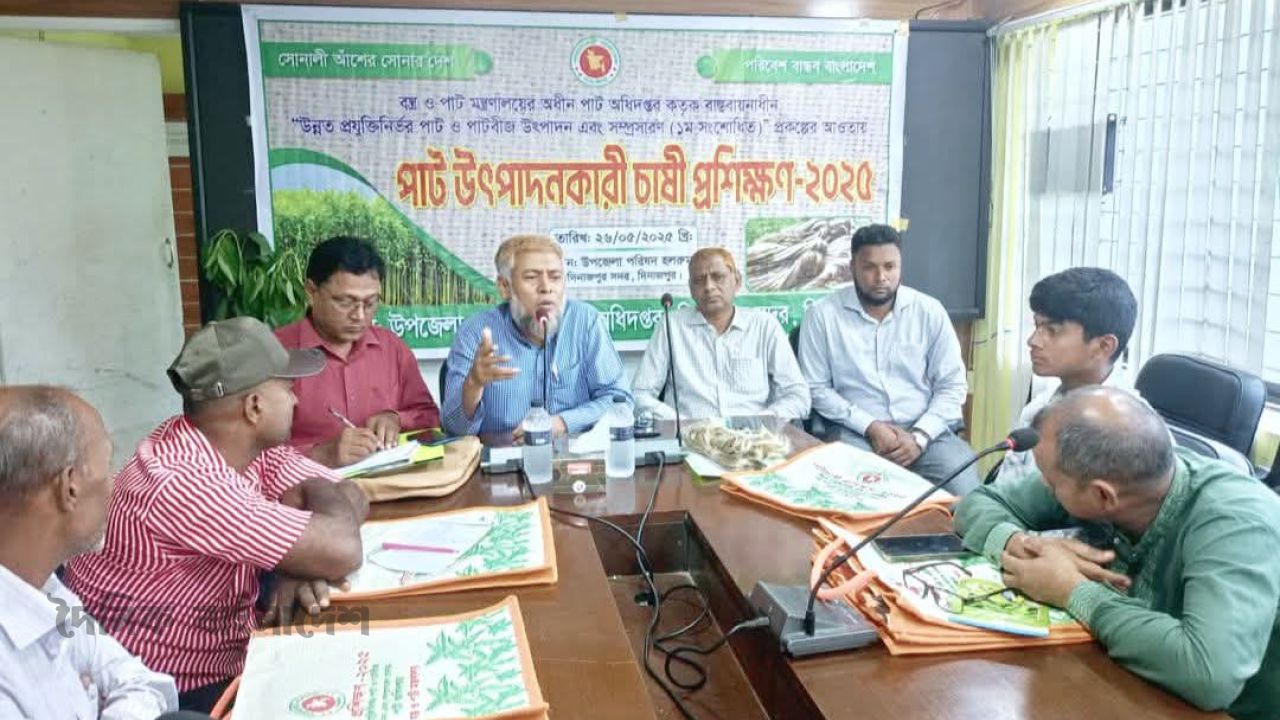 ২৬মে সোমবার সকালে দিনাজপুর সদর উপজেলা প্রশাসন ও সদর উপজেলা পাট অধিদপ্তরের আয়োজনে উপজেলা পরিষদ হলরুমে বস্ত্র ও পাট মন্ত্রণালয়ের অধিন পাট অধিদপ্তর কর্তৃক বাস্তবায়নাধীন উন্নত প্রযুক্তি নির্ভর পাট ও পাটবীজ উৎপাদন এবং সম্প্রসারণ (১ম সংশোধিত) প্রকল্পের আওতায় পাট উৎপাদনকারী চাষী প্রশিক্ষণ-২০২৫ অনুষ্ঠিত হয়েছে।