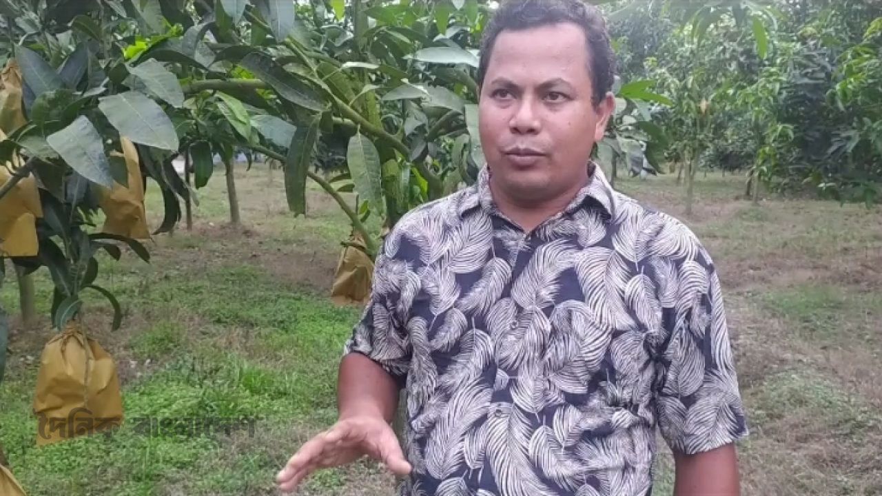 উত্তরের জেলা দিনাজপুর কৃষি নির্ভরশীল হলেও লিচু উৎপাদনে শীর্ষে রয়েছে দিনাজপুর জেলা। এই জেলার বিভিন্ন অংশে আম চাষ বা উৎপাদনের জন্য তৈরি করা হয়েছে প্রজেক্ট বা আম বাগান। দিনাজপুরের সীমান্তবর্তী হাকিমপুর হিলি পৌর শহরের উদ্যোক্তা কৃষক গ্যাপ পদ্ধতিতে (উন্নত কৃষি পরিচর্যা বা গুড এ্যাগ্রিকালচার অব ফ্রুটস) আম চাষ করে প্রথম বারের মতো বিদেশে রফতানি করছেন হাকিমপুরে কৃষক নিরঞ্জন চন্দ্র রায়। তিনি এখন হাকিমপুর উপজেলায় আলোচনার শীর্ষে রয়েছেন। উপজেলা কৃষি অফিসের সার্বিক তত্বাবধান, পরামর্শ ও সহোযোগিতায় প্রথম বারের মতো বিদেশে বারি-৪ আম রফতানি সম্ভব হয়েছে বলে জানান উদ্যোক্তা কৃষক নিরঞ্জন চন্দ্র রায়।গ্যাব বা ফ্রুট ব্যাগিং পদ্ধতি। এ পদ্ধতি ব্যবহারের ফলে বেশি উৎপাদন ও খরচ কম হয় বলে জানিয়েছেন উদ্যোক্তারা।আর উপজেলা কৃষি বিভাগ বলছে, গ্যাব পদ্ধতি বলতে, উন্নত কৃষি পরিচর্যা বা গুড এ্যাগ্রিকালচার অব ফ্রুটস বা ফ্রুড ব্যাগিং এ পদ্ধতিতে ফল গাছে থাকা অবস্থায় একটি নির্দিষ্ট সময়ে বা যখন ফল পরিপক্ক হবে সেই সময় বিশেষ ধরনের ব্যাগ দিয়ে ফলকে আবৃত করাকে বোঝায়। ব্যাগিং করার পর থেকে ফল সংগ্রহ করা পর্যন্ত গাছেই লাগানো থাকে ব্যাগটি। এপদ্ধতিতে নিরাপদ, বিষমুক্ত ও রফতানিযোগ্য আম উৎপাদন করা যায়। এছাড়া বালাইনাশক ব্যবহার ছাড়াই শতভাগ রোগ ও পোকামাকড়ের আক্রমণমুক্ত আম পাওয়া সম্ভব। গ্যাব পদ্ধতিতে ব্যাগিং করলে বালাইনাশকের ব্যবহার কমবে ৭০-৮০ শতাংশ। যেকোনো জাতের আমের ত্বক পরিষ্কার-পরিচ্ছন্ন ও হলুদাভা করা যায় এবং আমের সংরক্ষণকাল বাড়ানো যায়, যা রফতানির জন্য খুবই গুরুত্বপূর্ণ।হাকিমপুর হিলি সদর থেকে মাত্র আড়াই থেকে তিন কিঃ মিঃ পূর্বে পৌর শহরের গোহাড়া গ্রামের কৃষক নিরঞ্জন চন্দ্র রায় গ্যাব পদ্ধতি অনুসরণ করে এক একর জমিতে বারী-৪, গৌরমতি ও আম্রপালি জাতের আম চাষ করেছেন। প্রোগ্রাম অন এগ্রিকালচারাল অ্যান্ড রুরাল ট্রান্সফরমেশন ফর নিউট্রিশন অন্ট্রাপ্রেনিউরশিপ অ্যান্ড রেসিলিয়েন্স ইন বাংলাদেশ (পার্টনার) ও ক্লাস্টার ডেমোনস্ট্রেশন ফর গ্যাপ স্ট্যান্ডার্ড অব ফ্রুটস প্রকল্পের আওতায় আমবাগান করেছেন তিনি।সরজমিনে বাগানে গিয়ে দেখা যায়, আম গাছের সবুজ পাতার ভিতরে থোকায় থোকায় দুলছে আম। আবার ফ্রুট ব্যাগিং পদ্ধতিতে আম মোড়ে রাখা হয়েছে। বাগানের ভিতরে প্রবেশ করলে পাকা আম এর গন্ধে মুখরিত আম বাগান।এসময় কথা হয় বাগানের পরিচর্যা কর্মী হাকিম মন্ডলের সাথে তিনি বলেন, এই বাগানের বয়স ৫ বছর আর আমি গত ৪ বছর থেকে এই আম বাগান মৌসুমের শুরুতেই দেখা শুনা বা পরিচর্যার দ্বায়িত্ব পালন করে আসছি। এবারে বাজারে আম এর দাম না থাকায় লোকসন হওয়ার সম্ভাবনা রয়েছে। উদ্যোক্তা কৃষক নিরঞ্জন চন