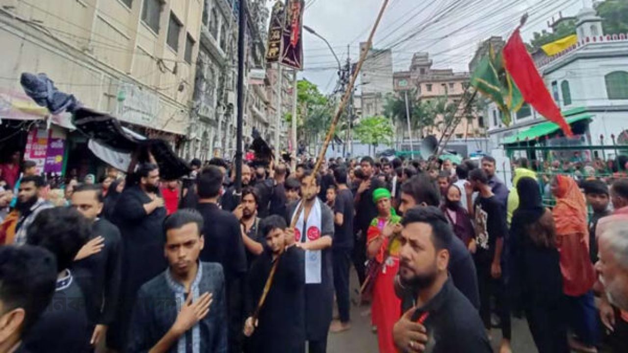 আজ ৬ জুলাই রোজ রবিবার কারবালার ঘটনার স্মরণে ঢাকায় পালিত হয়েছে পবিত্র আশুরা। এই উপলক্ষে শিয়া মুসলমানরা রাজধানীর বিভিন্ন স্থানে শোকের তাজিয়া মিছিল আয়োজন করেন।রবিবার সকালে পুরান ঢাকার ঐতিহাসিক হোসাইনী দালান প্রাঙ্গণে জড়ো হন হাজারো মানুষ। সকাল ১০টার দিকে সেখান থেকে প্রধান তাজিয়া মিছিলটি শুরু হয়। কালো পোশাকে, মাথায় কালো ফেট্টি বাঁধা, হাতে লাল, কালো ও সোনালি রঙের ঝাণ্ডা নিয়ে অংশগ্রহণকারীরা অংশ নেন শোক মিছিলে।মিছিলের অগ্রভাগে ছিল ইমাম হাসান ও ইমাম হোসেনের দুটি প্রতীকী ঘোড়া এবং কালো মখমলের ছায়াতলে ইমাম হোসেনের প্রতীকী কফিন। অংশগ্রহণকারীরা খালি পায়ে হেঁটে বুক চাপড়ে ‘হায় হোসেন, হায় হোসেন’ বলে মাতম করতে করতে মিছিলটি এগিয়ে যায়। মিছিলটি ইমামবাড়া থেকে বের হয়ে হোসাইনী দালান রোড, বকশীবাজার লেন, আলিয়া মাদ্রাসা রোড, উমেশ দত্ত রোড, হরনাথ ঘোষ রোড, আজিমপুর, নিউ মার্কেট ও নীলক্ষেত হয়ে সায়েন্স ল্যাবরেটরি মোড় পর্যন্ত যায়। সেখান থেকে ধানমণ্ডি লেকের পাশে নির্মিত প্রতীকী ‘কারবালা’তে গিয়ে শোকানুষ্ঠানের সমাপ্তি ঘটে।মিছিলের সামনে ও পেছনে আইনশৃঙ্খলা বাহিনীর সতর্ক উপস্থিতি লক্ষ্য করা যায়, যাতে অনুষ্ঠানটি শান্তিপূর্ণভাবে সম্পন্ন হয়। শুধু হোসাইনী দালানই নয়—বড় কাটরা, বিবিকা রওজা, মোহাম্মদপুর বিহারী ক্যাম্প, মিরপুর পল্লবী বিহারী ক্যাম্প, শিয়া মসজিদসহ ঢাকার বিভিন্ন এলাকায়ও আশুরা উপলক্ষে নানা আয়োজন করে শিয়া সম্প্রদায়।ইসলামি বর্ষপঞ্জির ১০ মহররম পবিত্র আশুরা। এই দিনে ৬১ হিজরিতে (৬৮০ খ্রিস্টাব্দ) ইরাকের কারবালা প্রান্তরে মহানবী হযরত মুহাম্মদ (সা.)-এর দৌহিত্র ইমাম হুসাইন (রা.) শহীদ হন। শোক ও ত্যাগের প্রতীক হিসেবে দিনটি বিশেষভাবে পালন করেন শিয়া মুসলমানরা।