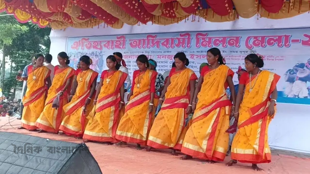 দিনাজপুরের বীরগঞ্জ উপজেলার গোলাপগঞ্জ উচ্চ বিদ্যালয় মাঠে শুক্রবার (৩ অক্টোবর) অনুষ্ঠিত হলো শতবর্ষের ঐতিহ্যবাহী আদিবাসী মিলন মেলা। সাঁওতাল সম্প্রদায়ের মেয়েরা জীবনসঙ্গী খোঁজার প্রত্যাশায় হাতে চুড়ি, কপালে টিপ, রঙিন শাড়িতে সেজে হাজির হয় এই মেলায়। তরুণ-তরুণীদের পাশাপাশি সনাতন ও ইসলাম ধর্মাবলম্বী হাজারো মানুষের পদচারণায় মিলন মেলা পরিণত হয় জনসমুদ্রে।