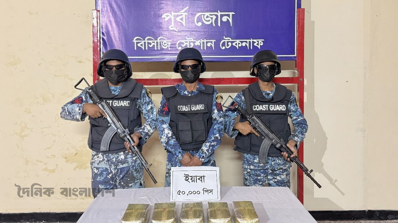 কক্সবাজারের টেকনাফে বিশেষ অভিযানে প্রায় ২ কোটি ৫০ লক্ষ টাকা মূল্যের ৫০ হাজার পিস ইয়াবা জব্দ করেছে বাংলাদেশ কোস্ট গার্ড।