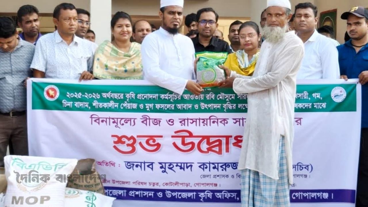 কোটালীপাড়া উপজেলায় ক্ষুদ্র ও প্রান্তিক কৃষকদের মাঝে বিনামূল্যে সার ও বীজ বিতরণ করা হয়েছে। কৃষি পুনর্বাসন সহায়তা খাতের আওতায় রবি মৌসুমে কৃষি উৎপাদন বৃদ্ধির লক্ষ্যে এই উদ্যোগ নেওয়া হয়েছে।